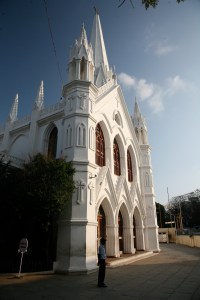 Way before the British, in the first century, the Apostle Thomas came to India. He too is entombed in Chennai. This afternoon while we visit dozens of little boys kick a soccer ball and make faces for our photos (no different from the little boys I know at home) in the immense courtyard of San Thome Cathedral and the little shrine where, we are told, the body and relics of St Thomas lay.