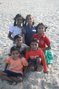 Not far away, a group of women with young children sit on an old boat. They indicate they want me to take their picture. They laugh, shout at their kids to be still and flash broad smiles at the camera. Their red forehead markings and large gold earrings glisten. Their colourful saris flow down to the sand.