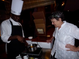 Close by an informal market is set up. Women sit on the sand, spreading out banana leaves in front of themselves to display the catch. There are long silver fish, glistening in the afternoon sun and mounds of shrimp. Smaller fish remind me of children’s drawings, shaped by two intersecting curved lines with a dot for the eye.