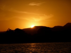 “Yoohoo. Hello there. Be sure to come for before-dinner-cocktails with us at 7 o’clock,” Maharaja’s niece-in-law calls up to us as she walks along the lakeside path below and waves.