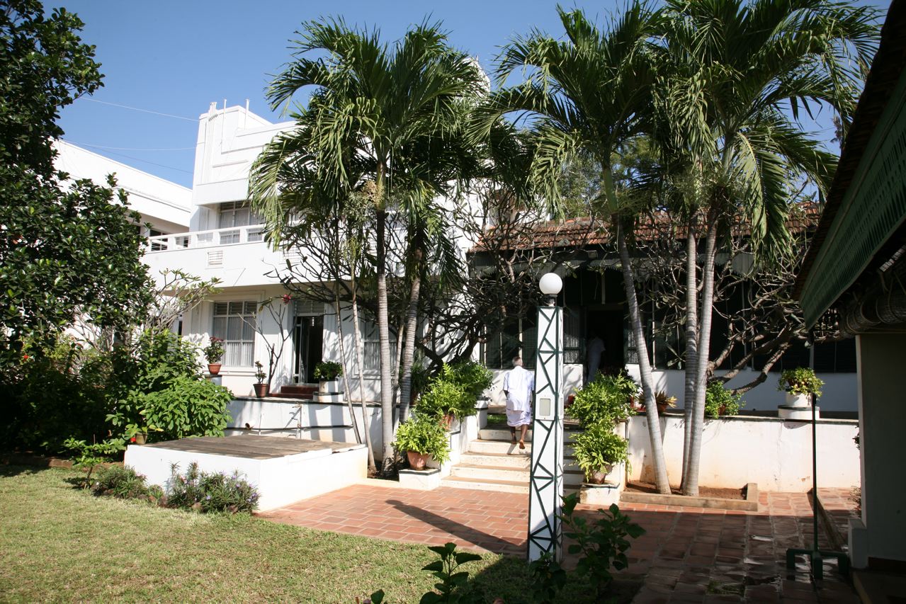 A calm, refined woman, Umma, greeted us warmly and handed us cool wet towels to freshen our hands and faces, served us tall glasses of lemonade and then invited us to follow her to the lunch area on the porch. They had been waiting for us and our places were ready at a long table set with the traditional fresh banana leaf dishes. A gentle water fountain nearby soothed my road weary head and the sweet scent of jasmine and roses from the garden filled the air. Servers, dressed in soft flowing saris, padded by and serenely spooned, one by one, dollops of the most aromatic and delicately spiced culinary creations I have ever tasted onto my banana leaf–fish curry, chicken Chettinad pepper masala, spinach Masiyal, mixed vegetable Kootu, drumstick sambar, yogurt. Then side dishes arrived. Vegetable fritters, coconut rice, mango. I was in paradise or was it home? It’s true. Home is where the heart is and the Bangala captured my heart.