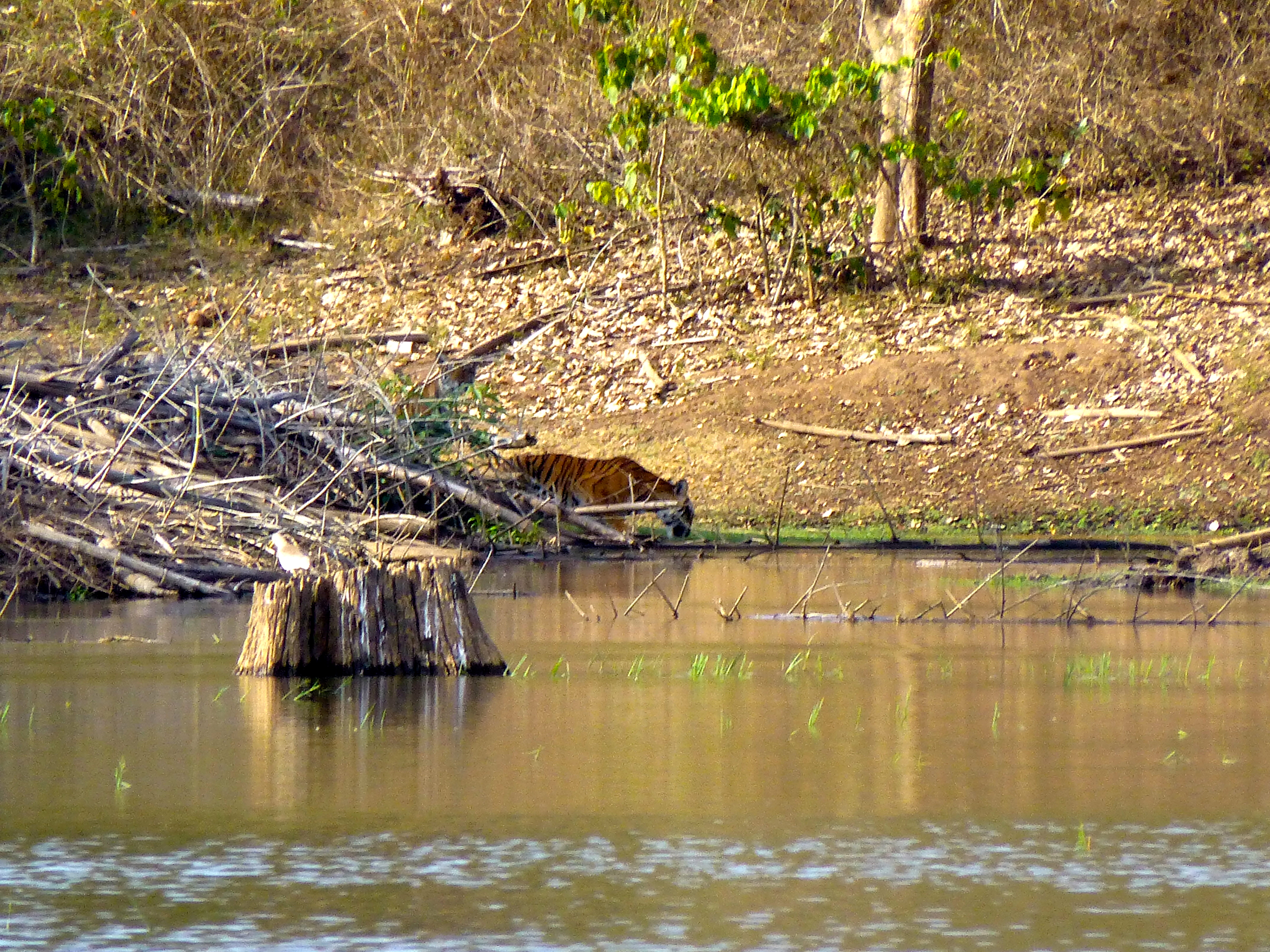 And she slinks back into the forest. It’s thrilling for me to see a tiger in her natural setting but it is even more exciting to know and understand the natural environment she thrives in so that we can work toward preserving her natural space. We return to our lodge full of awe. The sun is setting.